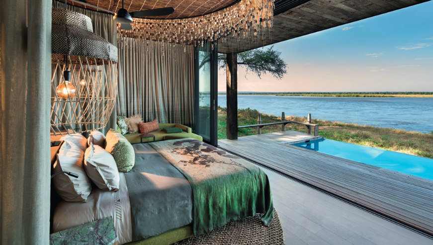 Ein Glamping-Urlaub im UNESCO-Welterbegebiet Lower Zambezi ist definitiv ein Erlebnis. Die Hütten wurden aus recycelten Mate- rialien erbaut. Hier stehen Gästen ein privates Tauchbecken und eine schattige Terrasse zur Verfügung. Die Region ist bekannt für ihre große Leopardenpopulation, und mit etwas Glück entdeckt man auf den Pirschfahrten die vielleicht scheuesten Tiere unter den „Big Five“. Auf geführten Buschwanderungen tritt man buchstäblich in die gigantischen Spuren der vielen Elefantenherden, die hier zu Hause sind. Zudem sind Bootsausflüge und Catch-and-Release- Angel-Trips im Angebot. Plus: Die Lodge eignet sich perfekt für eine Reise mit Kindern, denn viele Aktivitäten sind speziell für kleine Entdecker ausgelegt. Auch über das Open-Air-Kino am Abend dürften die sich freuen. Ab 600 Euro p. P. africanbushcamps.com